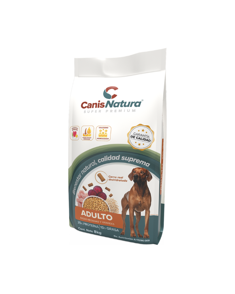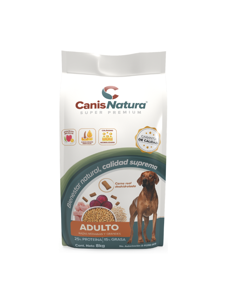 Dale a tu perro una nutrición superior con Canis Natura Super Premium Adulto, un alimento formulado especialmente para cubrir las necesidades de perros adultos de razas medianas y grandes.